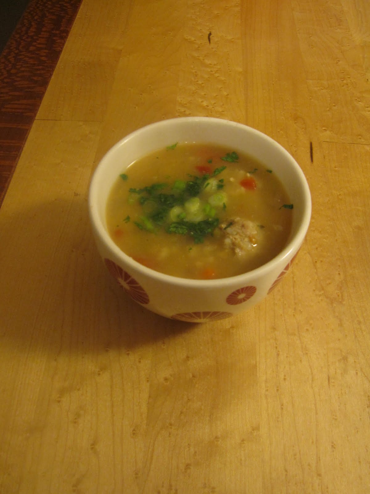 The first was a delicious Barley Turkey Meatball soup - which I highly recommend (http://www.barleyfoods.org/recipes/barley_albondigassoup.html). Throw a little roasted jalapeno in the meatballs and serve with cilantro, green onion, and a dollop of sour cream on top - Yum! (We called it Chile Butterball soup!)